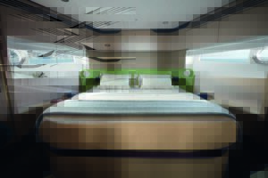 O iate conta ainda com três amplos camarotes, sendo 2 suítes, todas com móveis exclusivos e que foram feitos à mão por artesãos italianos, com pedras, madeiras nobres e couro italiano, com cantos arredondados, cores suaves e linhas fluidas e que trazem ao barco um conforto e uma experiência incomparável.