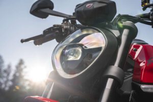 O farol integra perfeitamente a imagem orientada para o futuro, ao mesmo tempo que nos remete para a forma redonda da ótica que apelou a centenas de milhares de apaixonados das Monster. A traseira tem linhas puras mas sinuosas, sendo suportada pelo sub-chassi melhorado pela avançada tecnologia GFRP (Glass Fiber Reinforced Polymer, ou Polímero Reforçado de Fibra de Vidro), para ser, simultaneamente, ainda mais leve e robusto.