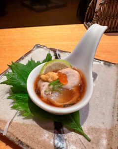 No menu, o Omakase servido no disputado balcão da casa mantém o atendimento exclusivo e primoroso feito pela equipe da casa. Os detalhes de ambiente que fazem o restaurante ser tão especial, os clássicos tatames, e o balcão feito por marceneiros japoneses que não utilizam pregos ou parafusos, mas apenas encaixes, encantam à primeira vista.